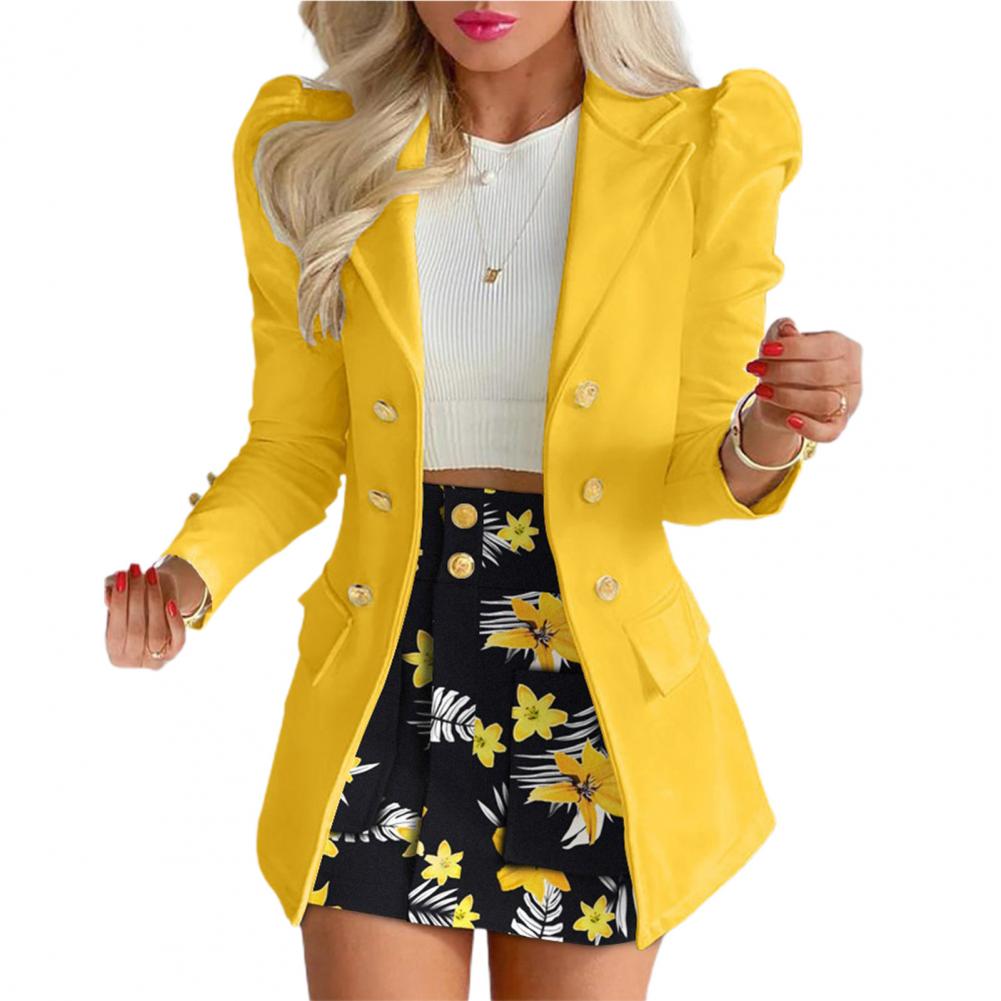1 Set Women Suit Set Popular Turndown Collar Buttons Blazer Skirt Ladies Suit Coat Skirt