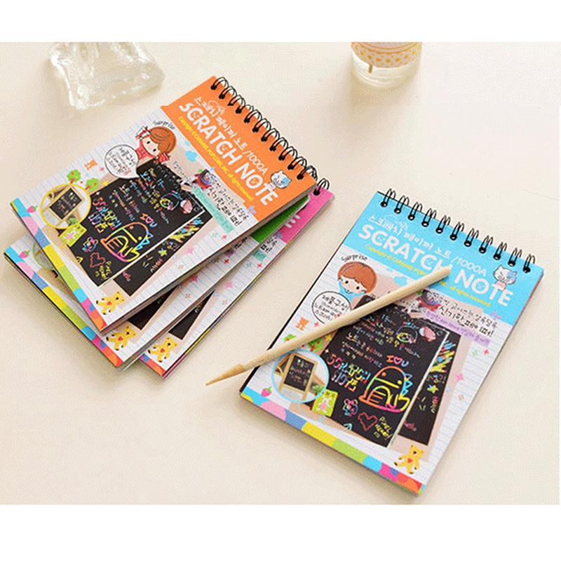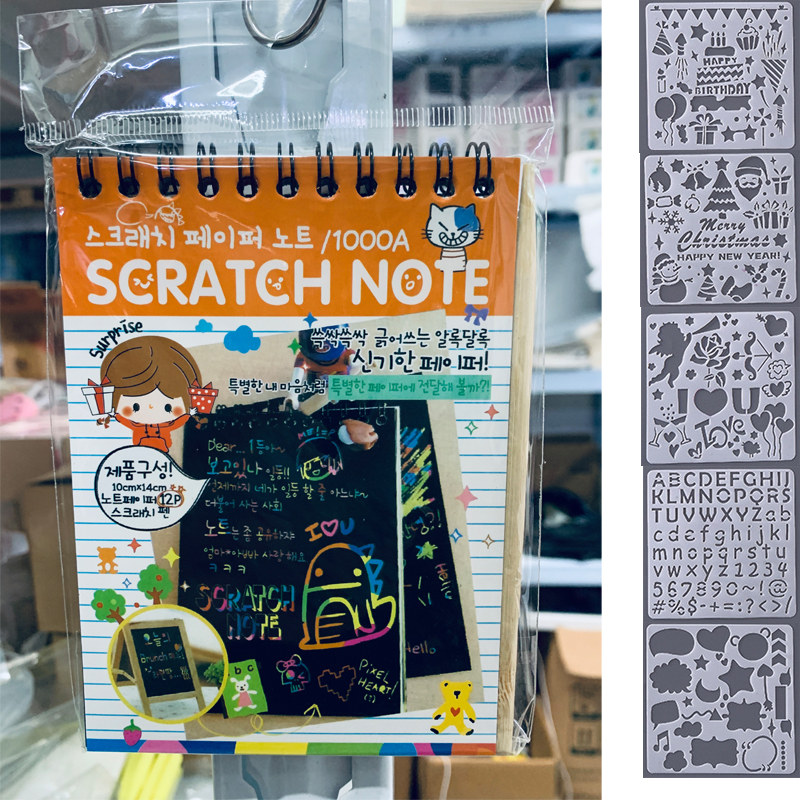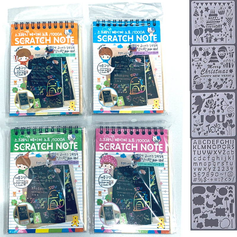 12 Sheets Magic Color Rainbow Scratch Art Paper Card Set with Graffiti Stencil for Drawing Stick DIY Scratch Painting Toy Kids