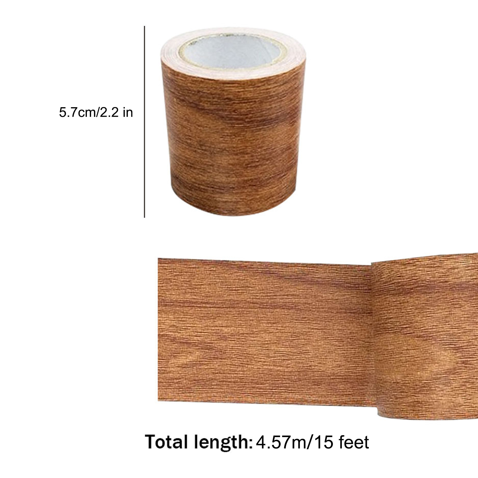 1. Size: 1 roll, length 15 feet (4.6m), width 2.2 inches (5.7cm), thickness 0.01 inches (0.26 mm).2. 7 colors: Brown antique oak texture, golden camel oak texture, light wine red peach wood texture, chocolate oak texture, dark chestnut peach wood texture, dark brown dark oak texture, stylish light gray wood grain.3. Material: Made of PE and gauze composite material, environmental protection, safety, waterproof, durable, strong peeling force, tensile strength, grease resistance, aging resistance, temperature resistance.4. DIY: Real and beautiful appearance, can be pasted in the gap or stain, not easy to find. You can easily DIY your own shapes with scissors. 5. Multifunctional: The length and shape can be tailored by yourself. Perfect for doors of any size, kitchen cabinets, dressing table drawers, crafts, bedside tables, bookshelves, crafts DIY, and even walls of various sizes. Can be used to refurbish old furniture or wall.Specification:Material: gauze+PESize: about 5.7cm*4.57m (2.2 inches * 15 feet)Color: brown antique oak grain, golden camel oak grain, light wine red peach grain, chocolate oak grain, dark chestnut peach grain, dark brown dark oak grain, stylish light gray wood grainPacking List:1 Roll of Wood Grain Repair Tape Note: 1. Due to manual measurement, please allow slight tolerance in size. 2. Due to light and display difference, there may be slight color difference.