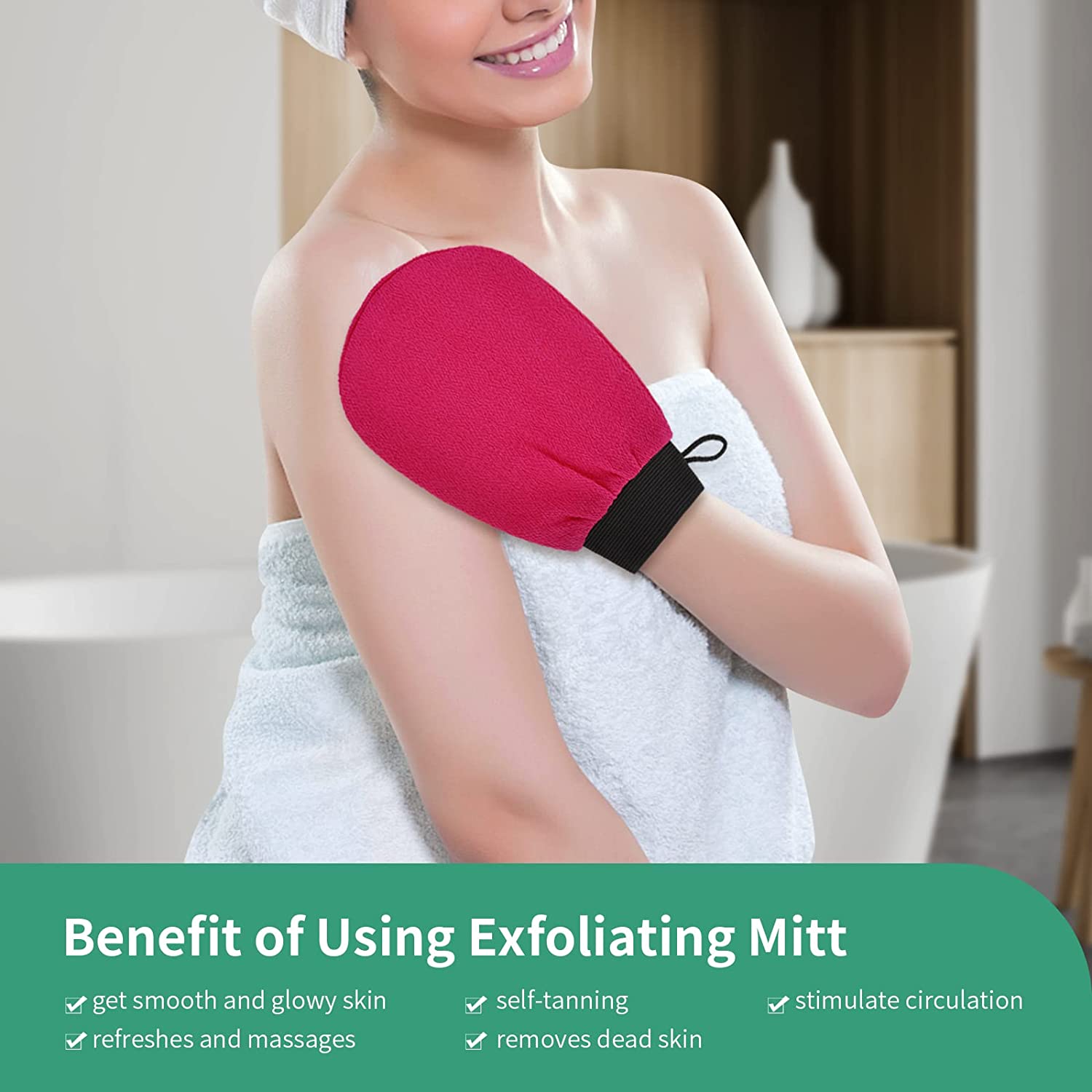 << Practical to use: Promote skin metabolism, increase blood circulation, the exfoliating mitt helps you smooth your skin, giving you a good using experience, help you keep your skin in a good condition