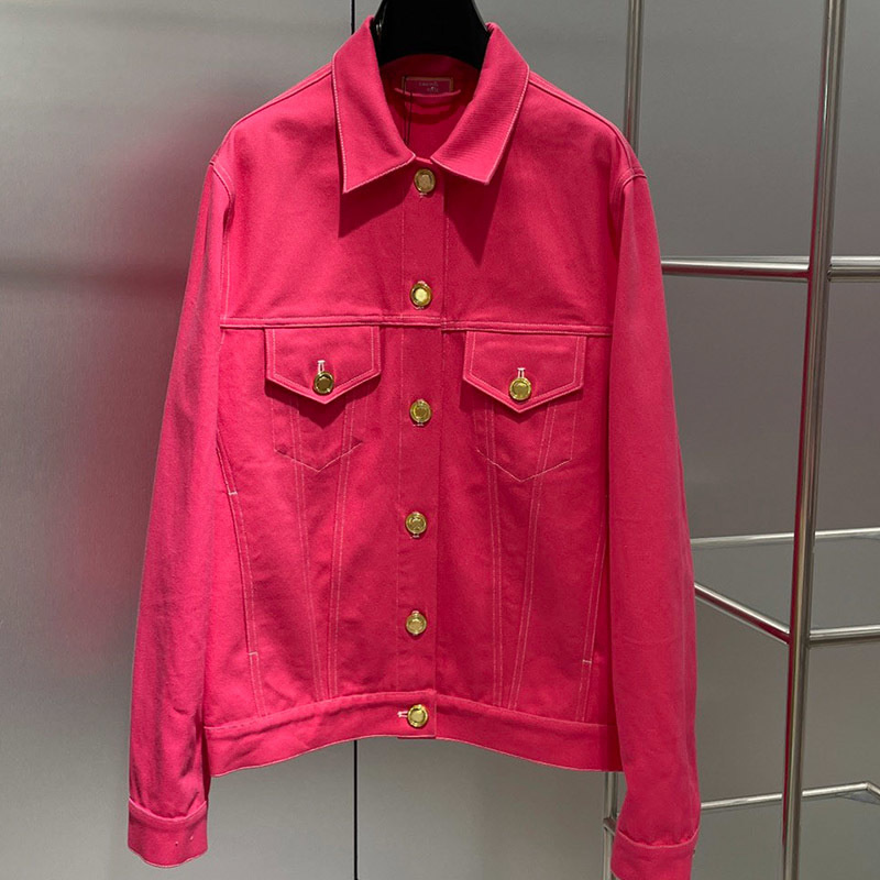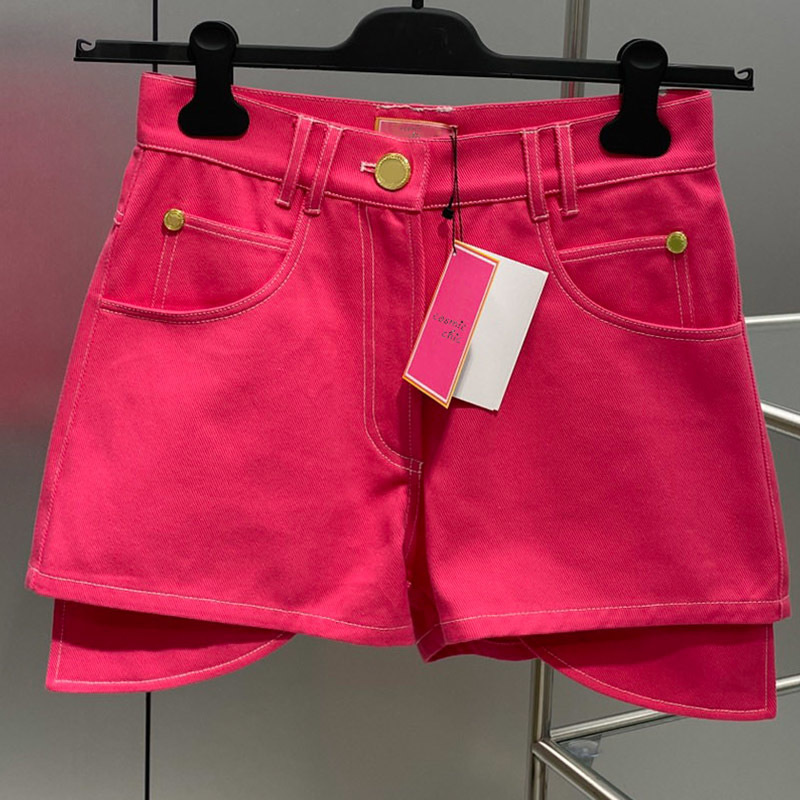 22 Fashion Pink Letters Denim Short Sets Women Luxurious Metal Single Breasted Lapel Jacket Sexy Slim Pocket Button Denim ShortsA0443