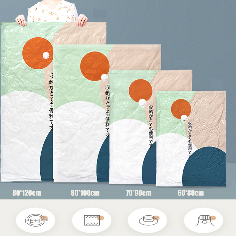 Name: Vacuum compression bag Material: PA+PE Color: color matching Size: S: 50*70cm M: 60*80cm L: 70*90cm XL: 80*100cm 2XL: 80*120cm Function: Foldable, large capacity, tight and airtight, convenient and practical, insect-proof, mildew-proof, space-saving, environmentally friendly, non-toxic, soft and wear-resistant, no odor, simple and stylish, easy to store, vacuum design, clean storage space, good helper Reminder: The size is manually measured, there may be a difference of 1cm, the actual size is subject to the received product. Thank you!