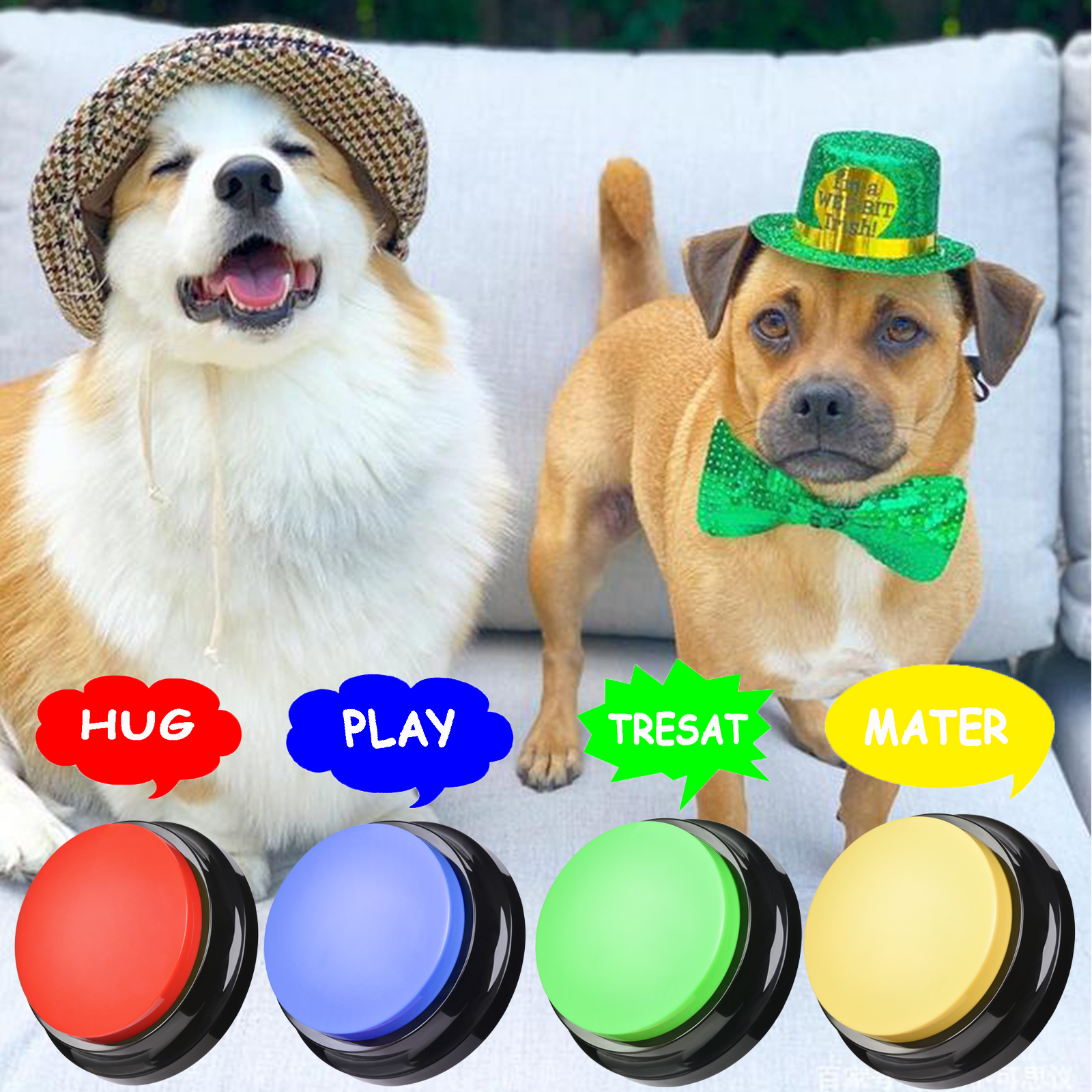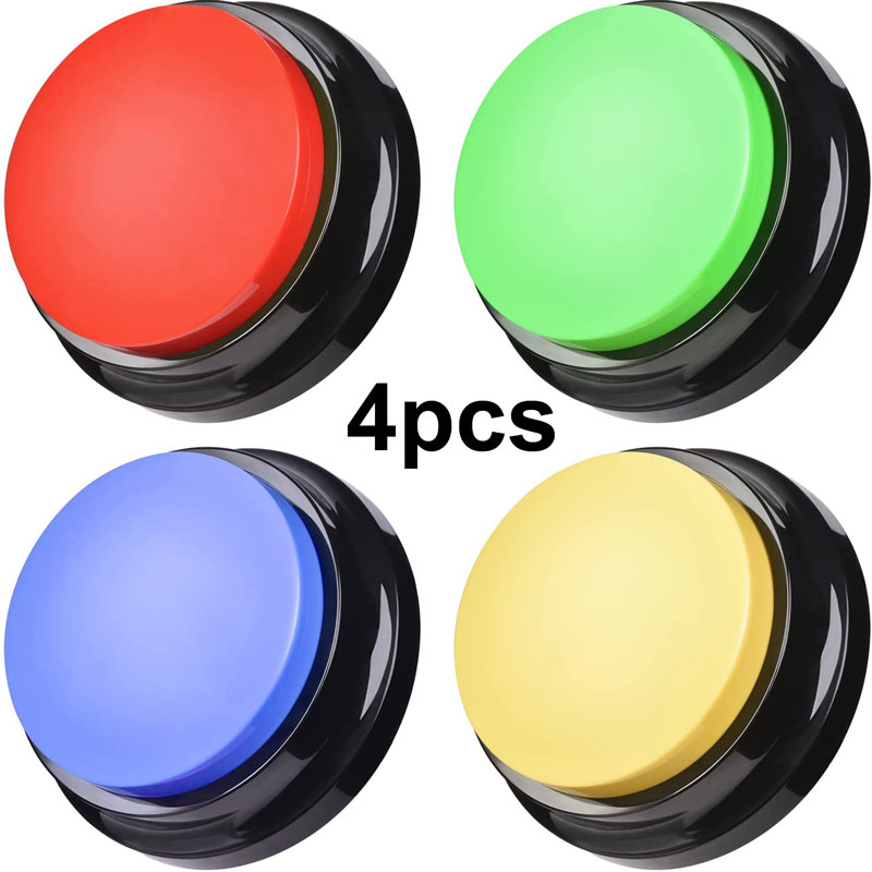 【Pet Training Buzzer】You can record commands such as "food", "drink", "outside", "yes" and "no" to let your pet communicate with you; just a little patience can make you understand the pet's mind. Very suitable for training cats, dogs and other pets, different color buttons can be used as options for different training.