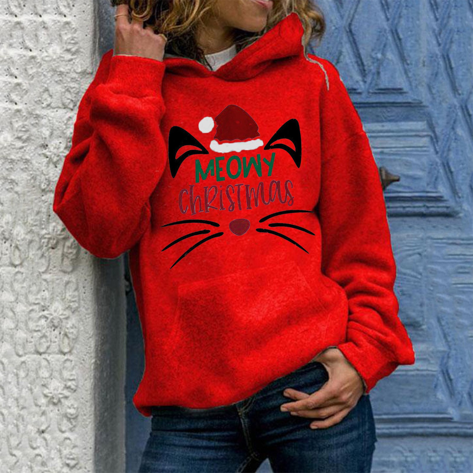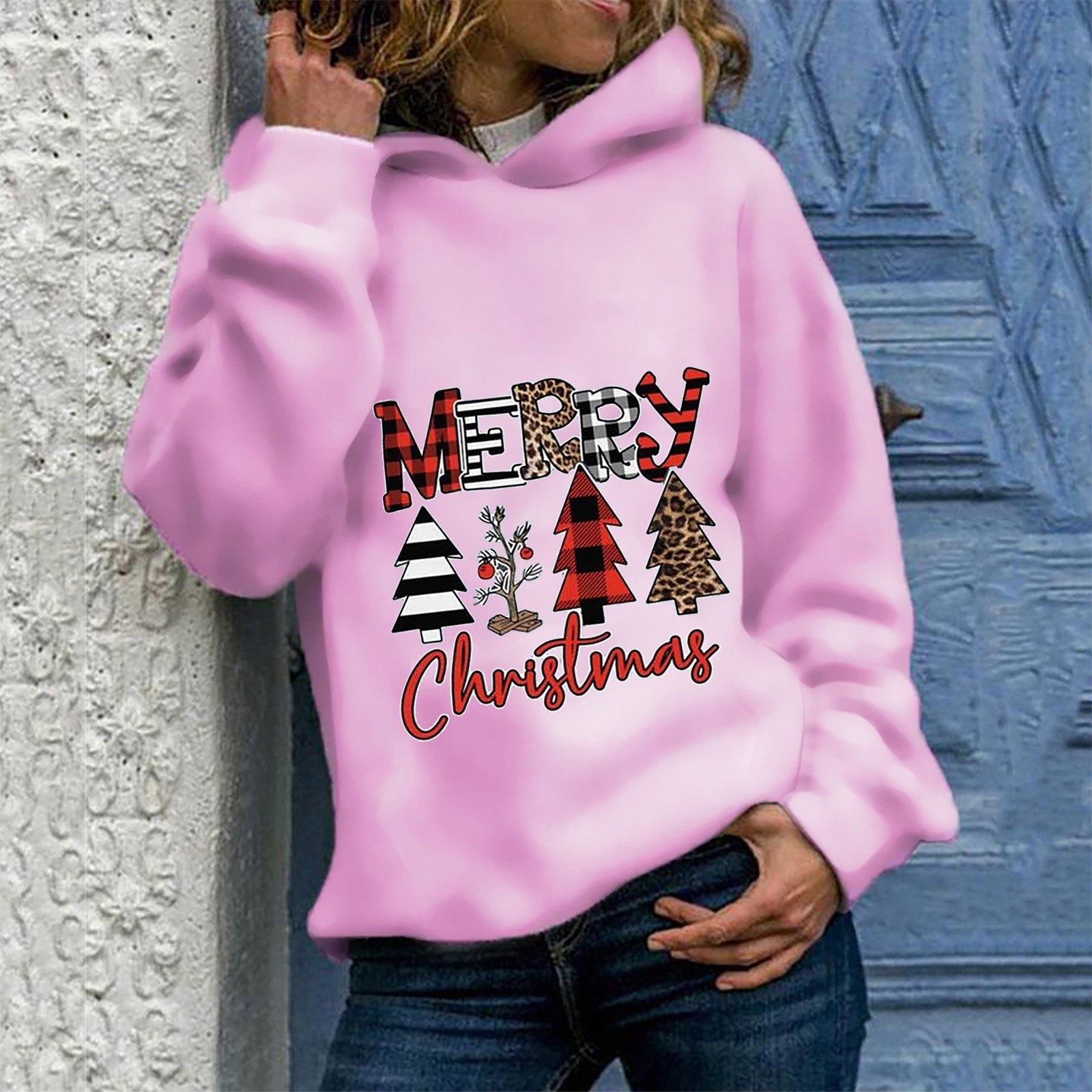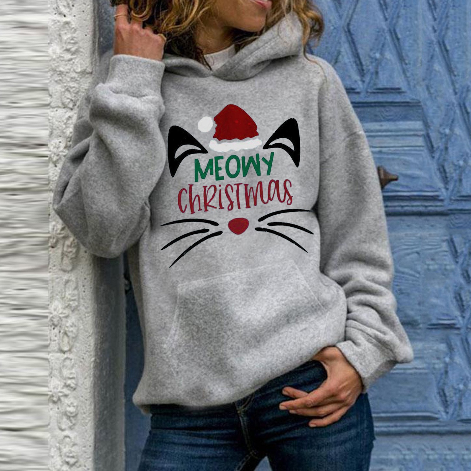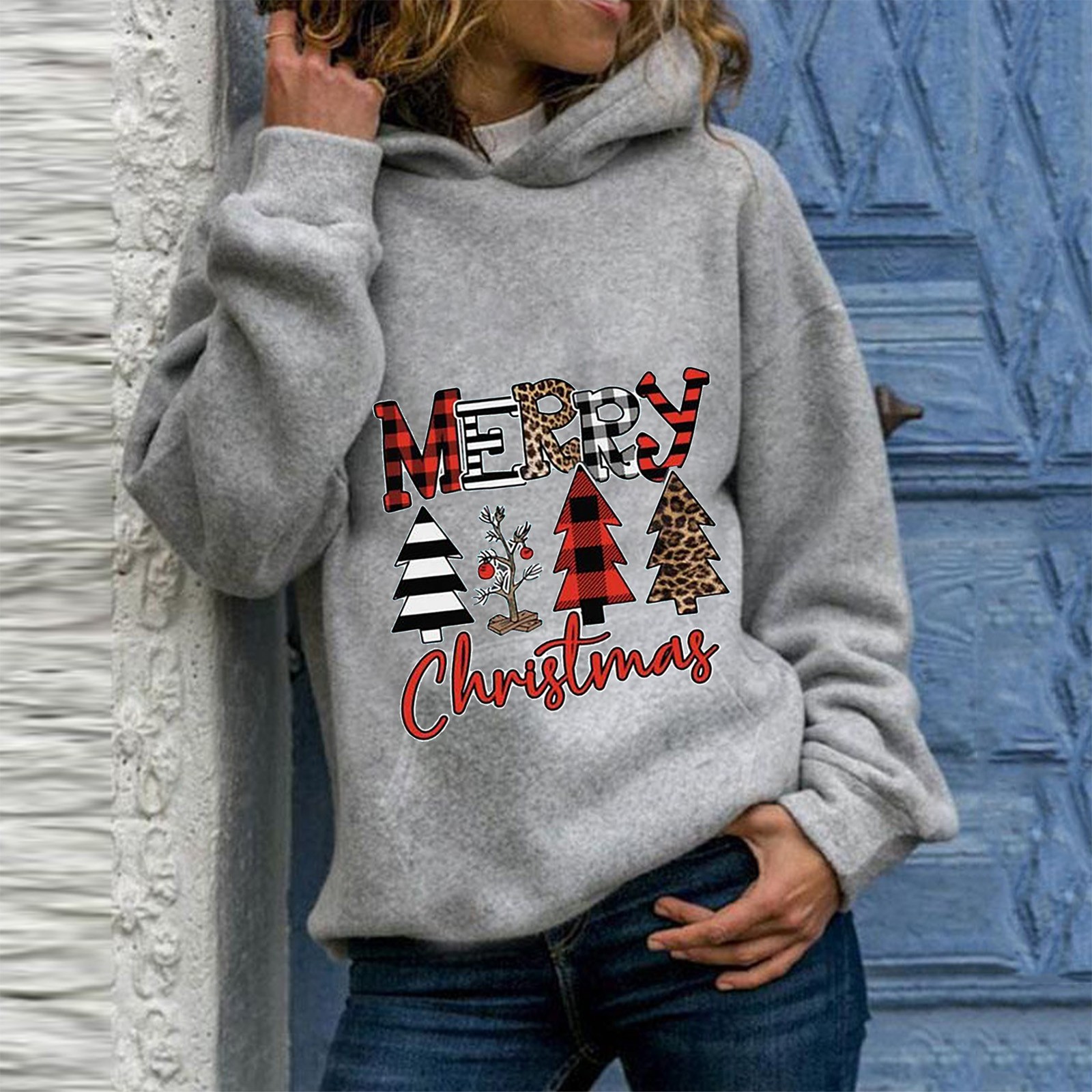 Fashion Womens Casual Round Neck Long Sleeve Print Loose Pullover Hoodie