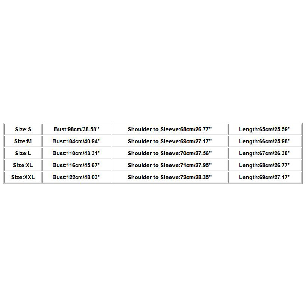 | Size | Bust | Shoulder to Sleeve | Length |