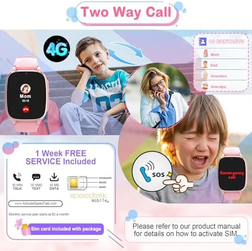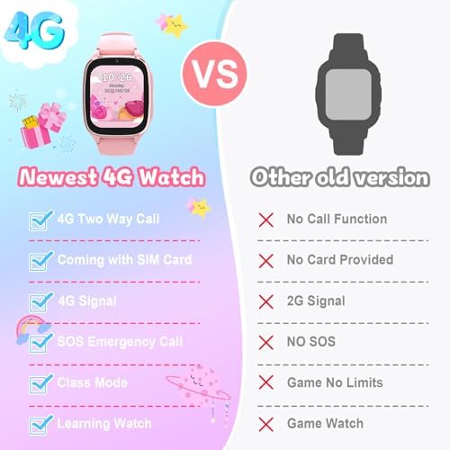4G Kids Smartwatch Phone - Smart Cell Phone Watch for Boys Girls Ages 4-12 with Call, SOS, Parental Controls, Games, Camera, Alarm, Video, Music Children's Smart Watch Gift (Includes SIM Card) (Pink)Recommendations