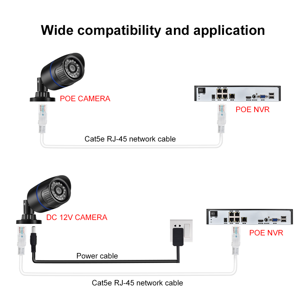2.Ethernet Cables RJ45 are used for IP Cameras, and NVR System.