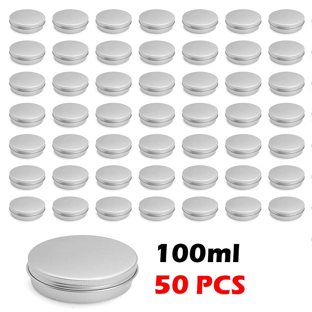 2,These round cans containers come with screw-top lids and are made of Aluminum. They have no sharp edges, all edges are rounded and are seamlessly formed from 0.24mm metal.