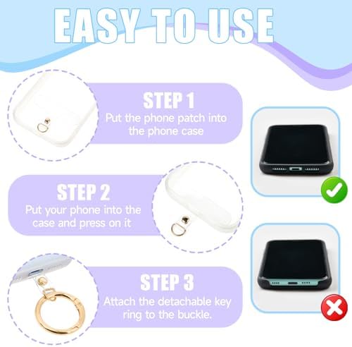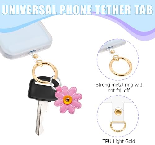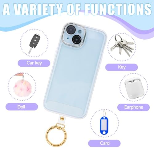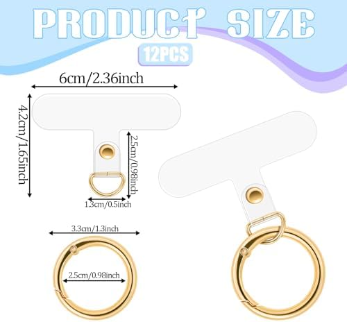 Product name: 6pcs phone tether tab + 6 metal ringsColor: light goldMaterial: PVC+metalSpecifications: 12pcsLength: 6x1.5cm, metal rings: inner diameter 2.5CMPacking list: 6pcs tether tab for phone lanyard + 6 metal rings