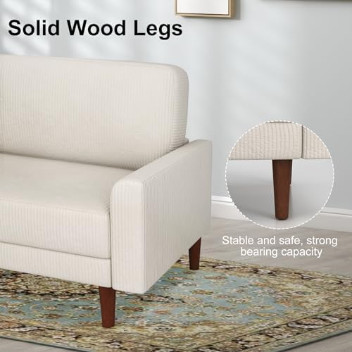 The beige loveseat features seat cushions that making it perfect for longsitting sessions, whether you're reading, watching TV, or just lounging.
