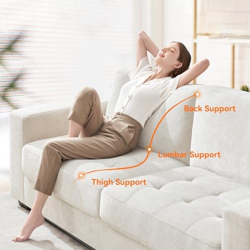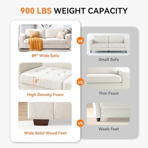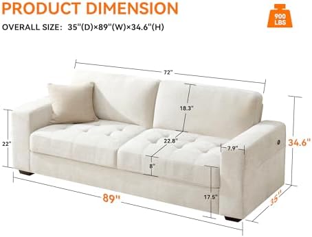 89 Inch Modern Sofa Couch with USB Port & Side Pockets, Chenille Fabric 3 Seater Couch,Comfy Washable Small Sofas & Couches for Living Room Bedroom Apartment(Beige)