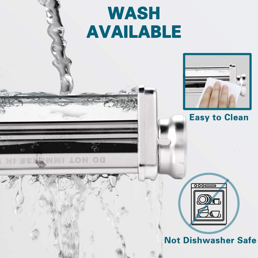 With 8 thickness options, you can adjust the thickness as you like. Rolling dough sheet roll dough slices using the highest thickness setting. Then place the doughin the middle of the pasta machine attachment, Steadily tighten the roller for your desired thickness.