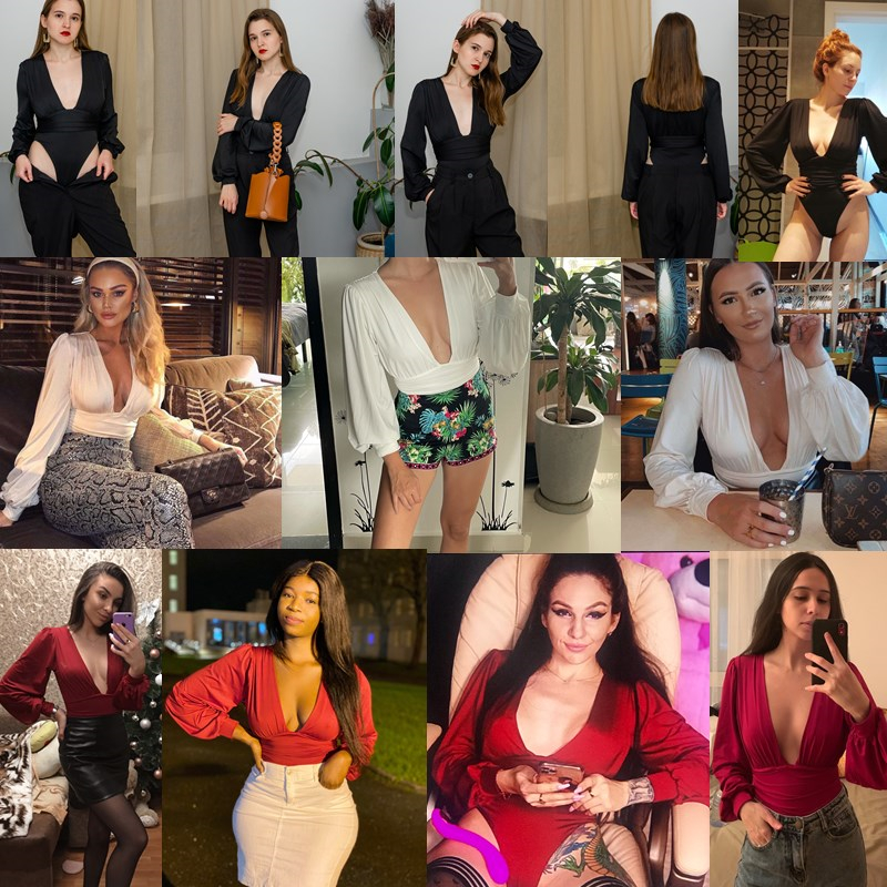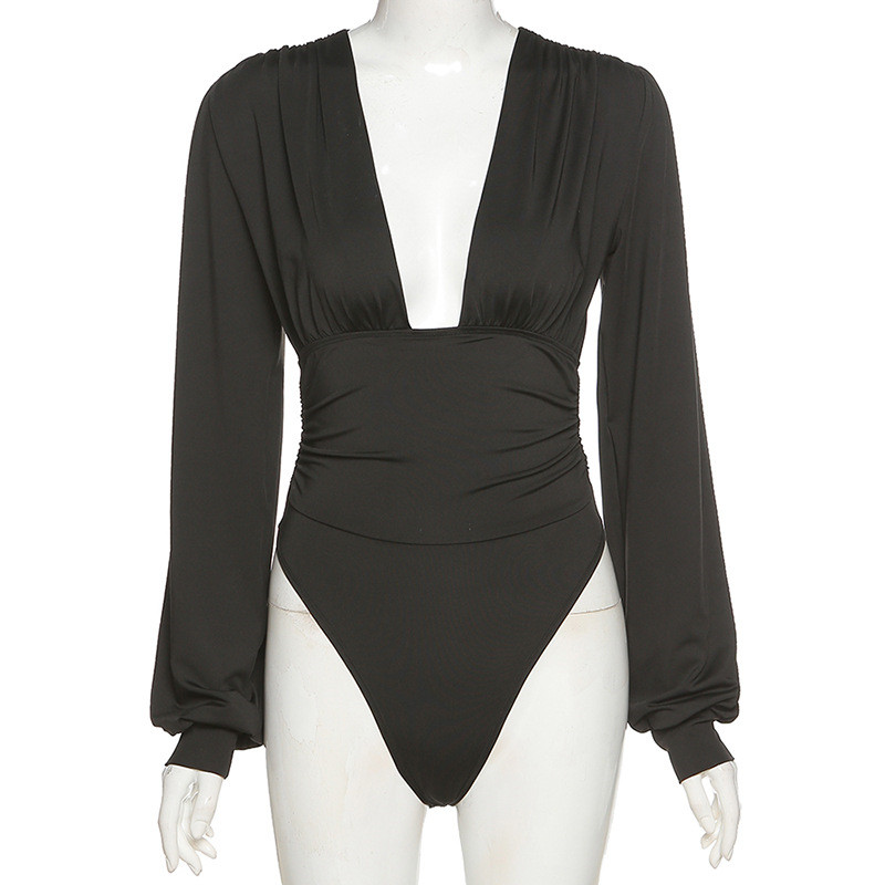 Autumn Winter Rompers Women Jumpsuits Sexy Club V Neck High Waist Solid Bodycon Regular Long Sleeve Female Bodysuits Women