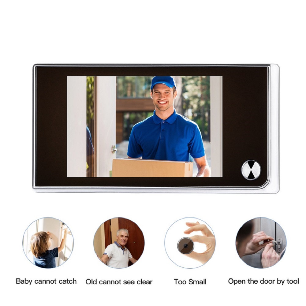 Awapow 3.5 Inch Video Doorbell 120 Degree Peephole Viewer Video Eye Door Bell Smart Home Outdoor Camera Monitor Visual Doorbell