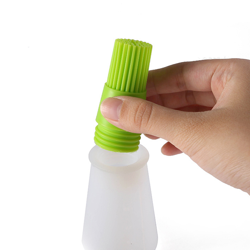 BBQ Silicone Charcoal Grill Oil Brush with Cap Heat Resistant Basting Oil Bottle Brush Kitchen Barbecue Baking Tool