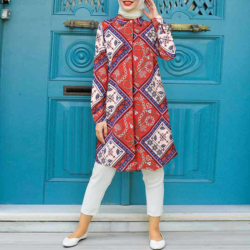 Package included:1 Blouse Material:95% Polyester+5% Spandex Colors:Blue,Orange Red,Blue Sleeve Length:Full Sleeve Neckline:Turn-Down-Collar Pattern:Printing, Length:Knee Length Buckle chain:Button Down Front,Button Cuffs Thickness:Thin Style:Leisure,Bohemian,Retro,Europe,National,Muslim Blouse Abaya Kaftan Season:Spring,Summer,Autumn,Winter Occasion:Family,Party,Beach,Wedding,Holiday Attentions: 1.The Real Object May Exist Slightly Colors Differences Compared To Images As Different Computers Display.Caution If Minding,Thanks. 2.There Might Be A Manual Measuring 1-3 cm Error.Sorry For Any Inconvenience. 3.Please Prevail On Real Item, Model Images For Reference Only. 4.Attention!!!Please check the size chart carefully before placing the order.