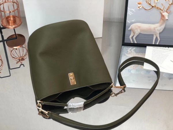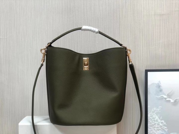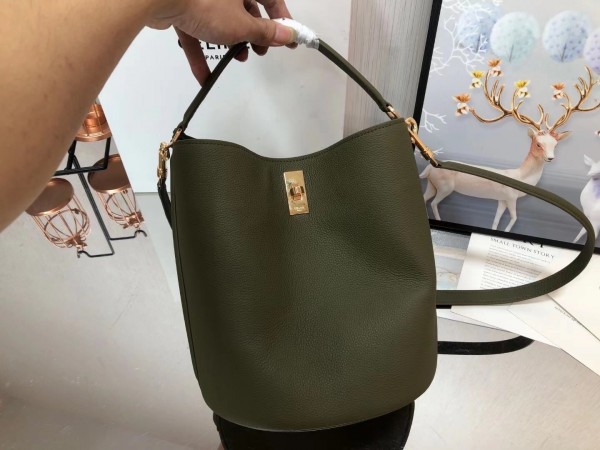 Celine Bucket 16 Bag In Dark Olive Grained Calfskin
