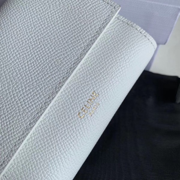Crafted in grained calfskin leather by the House of Celine, this small trifold wallet with a flap offers enough space to fit into even a tiny bag or clutch, yet with space for coins, notes and credit cards, this neat wallet is the ultimate mini companion. Coupled with an elegant design with golden finishing touches.