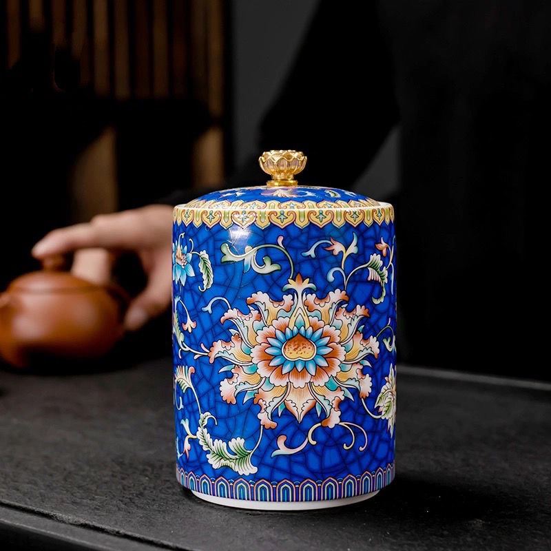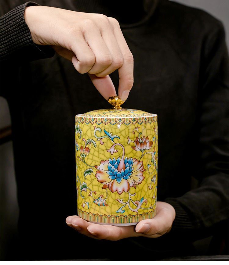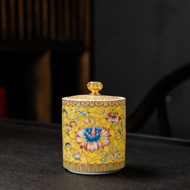 Chinese enamel ceramic tea pot size pot moisture-proof pot living room dried fruit storage pot household kitchen supplies