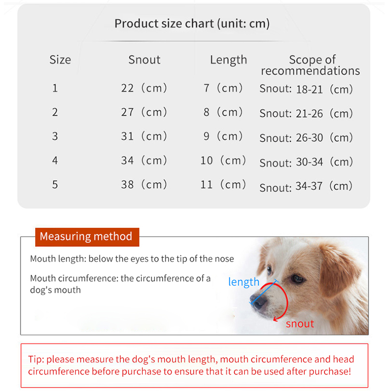 Size 1: Mouth length 7cm, mouth circumference 22cm, head circumference 30-40cm, weight 80 grams
