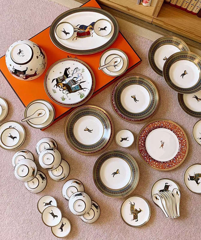 Quality: Maximum high-end quality replica Hermes dinner set, 1:1 mirror copy Hermes Cheval d’Orient porcelain dinner set