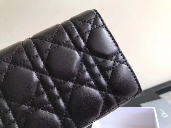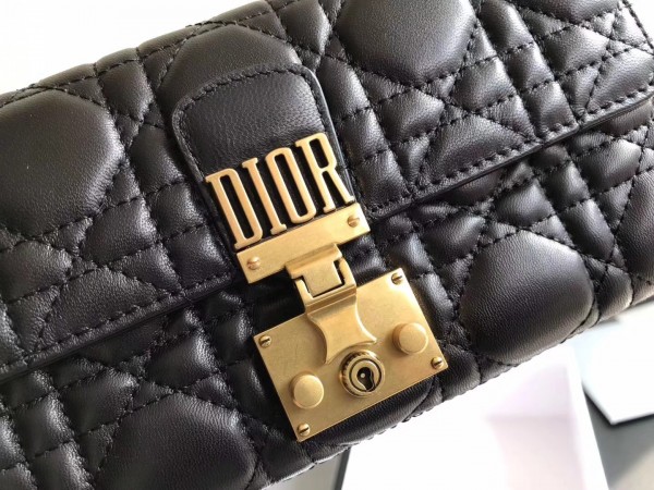 Dior DiorAddict Continental Wallet In Black Lambskin