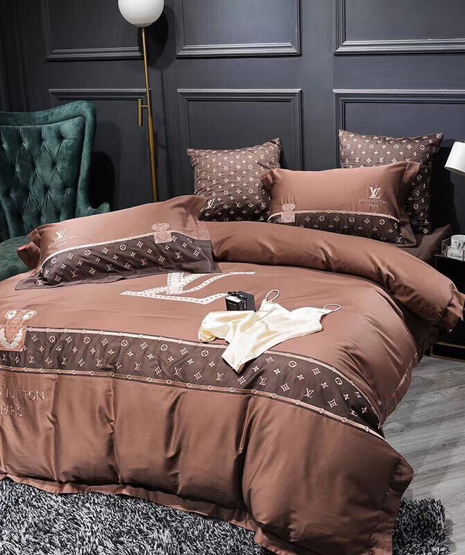 High-end copy louis vuitton home brown bedding set