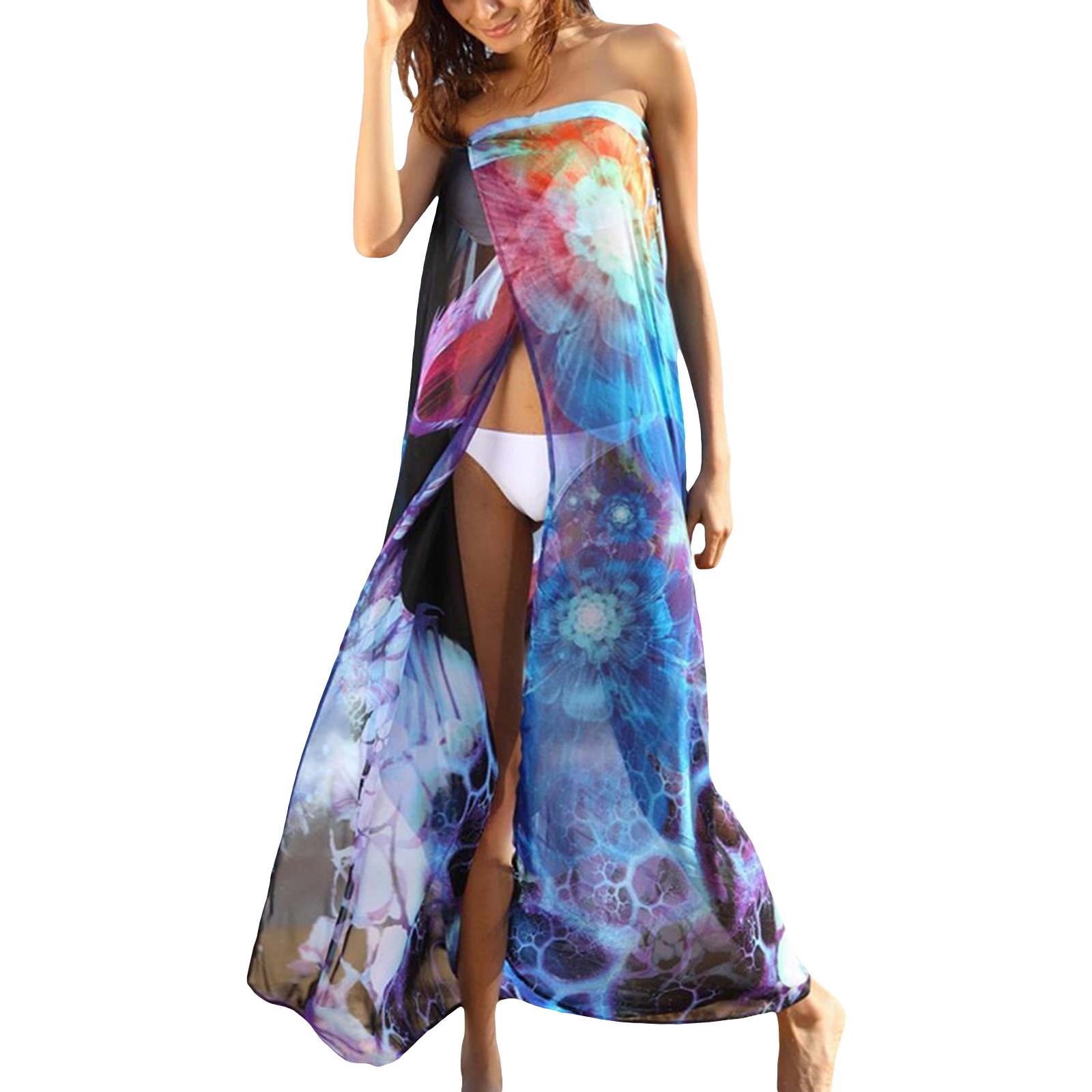 Female Tie-Dyed Sleeveless Strapless Long Beach Dress Bikini Cover Ups