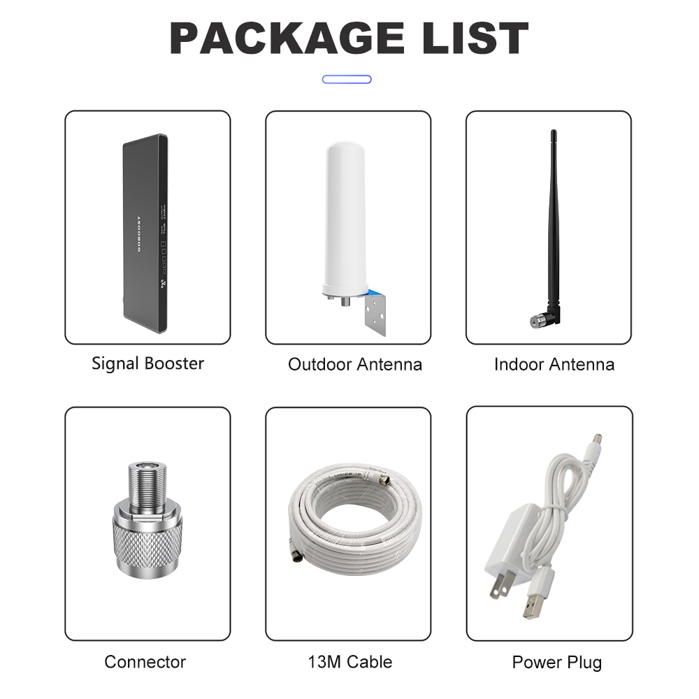 GOBOOST 70dB Signal Booster 2G 3G 4G Cellular Amplifier LTE 700 800 850 900 1800 2100 MHz Network Repeater With 360° Antenna Kit