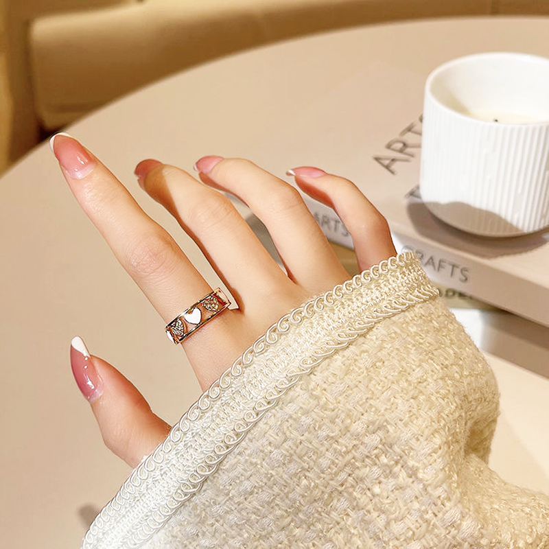 Products : Korean Exquisite Fashion Hollow Out Heart Ring Zircon Shell Adjustable Lady Rings Romantic Elegant Delicate Female Jewelry
