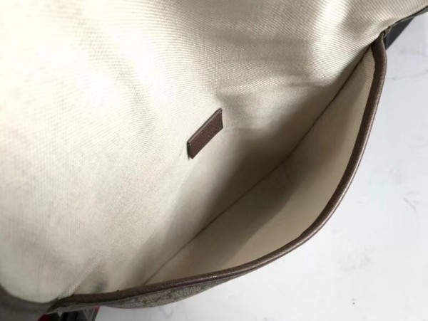 The medium messenger bag is part of a collection of vintage inspired leather accessories in GG Supreme featuring an oval leather tag with metal feline head, a now-established code of the House. The slim design has a magnetic flap closure and is completed with an adjustable nylon strap featuring the House Web colors.