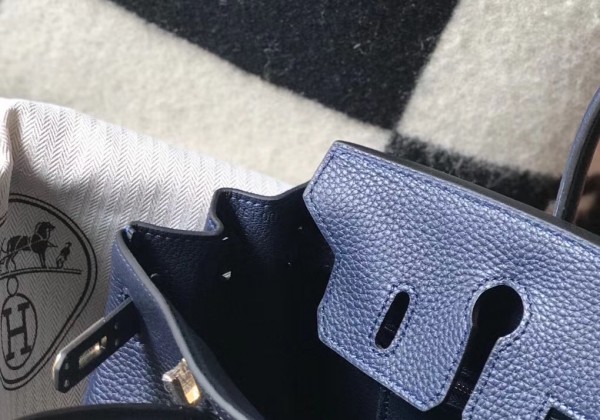 Hermes Birkin 25cm Bag In Navy Blue Clemence Leather