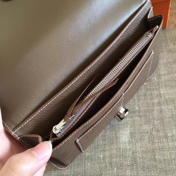 Presenting the Hermes Dogon Wallet. The Dogon Wallet features a leather strap and “Clou de Selle” tab closure. The tab is a circular shape with‘Hermes Paris’engraved on it. This wallet comes from Combined style, and the design looks quite easy and our eyes are pointing to the silver plated closure in the center. It is the most convenient way to organize your essentials like your bills, credit cards, coins and more.
