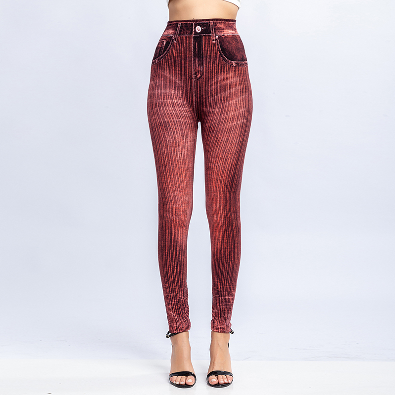 High Waist Faux Jean Leggings Slim Elastic Seamless Plus Size Skinny Pencil Pants Female Pocket Workout Running Leggings .