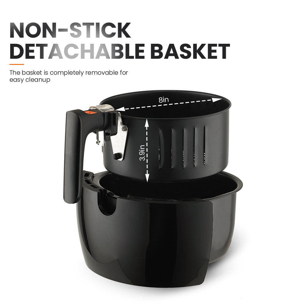 ● 【Non-stick & Easy to Clean】The detachable basket is coated with aluminium Teflon, which is non-stick and easy to clean. The detachable part is dishwasher safe.