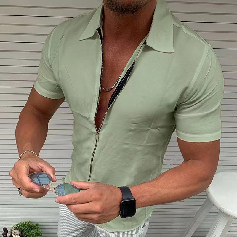 Men's Shirts 2022 Summer Men's Tide Brand New Fashion Simple Solid Color Casual Short Sleeve Zipper Shirt Cardigan