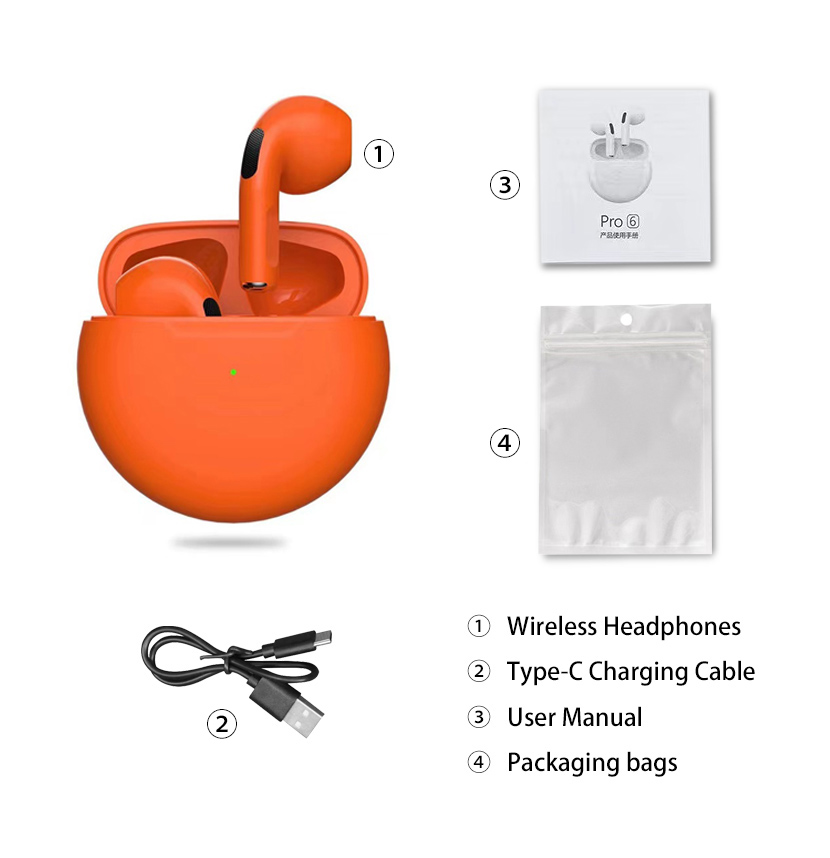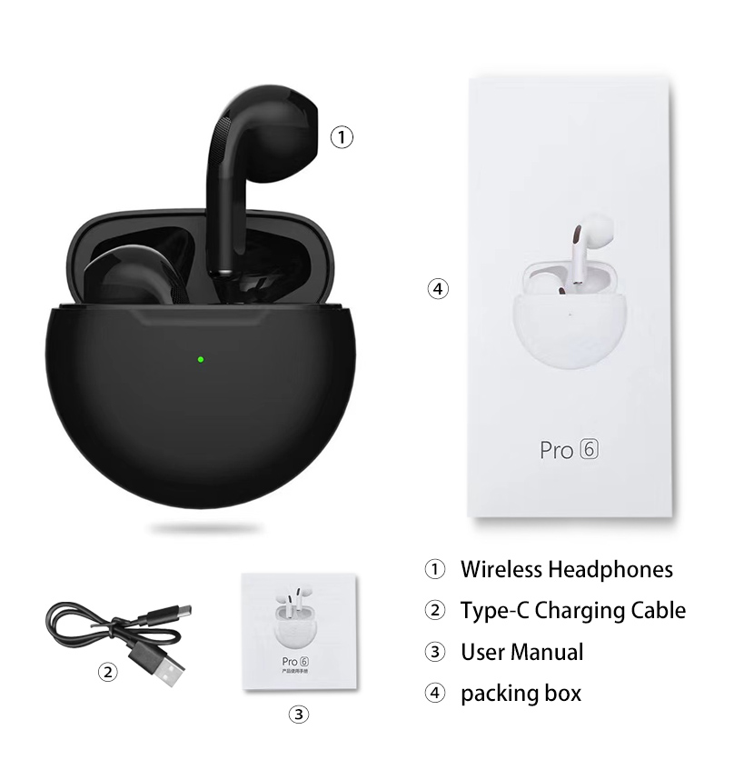 2022 Original Pro6 TWS Headsets For Iphone Xiaomi Phones Bluetooth 5.1 Touch Control Wireless Earphones Sport Earbuds Music Headphone