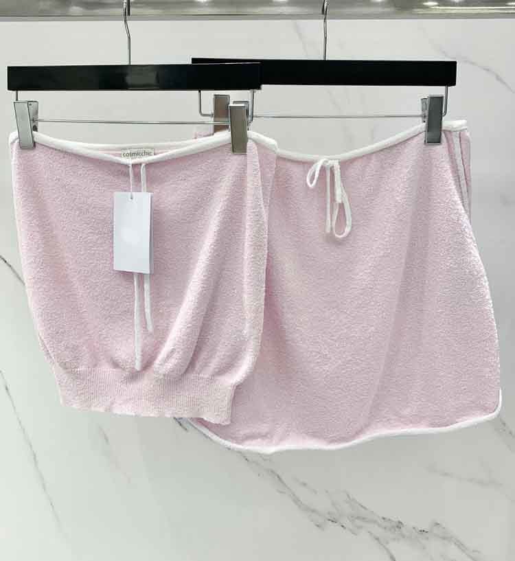 2022 New Pink Tube Top Knitted Set Sexy Lace-up Design Waist Sleeveless Tee High Waist Short Skirt Fashion Casual Sets For Women.A0738
