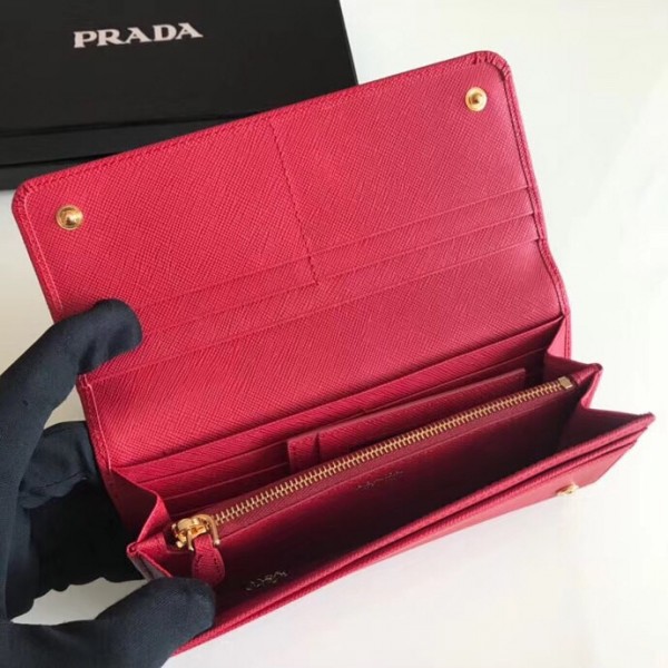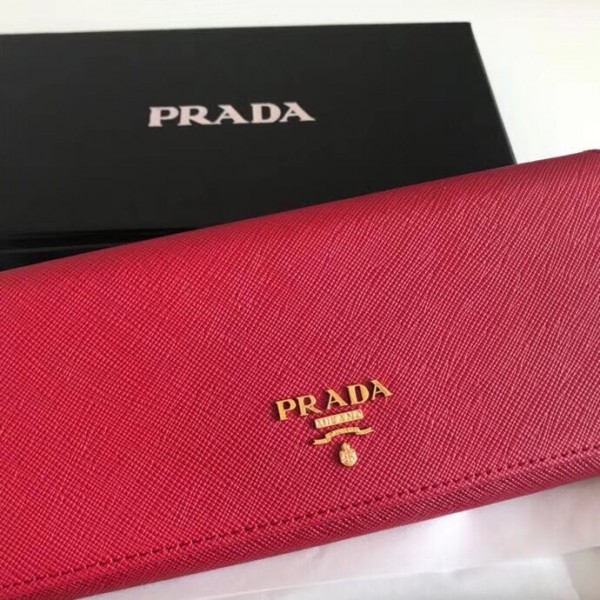 Prada Continental Wallet In Red Saffiano Leather