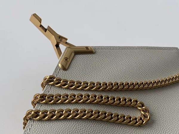 Saint Laurent WOC Cassandra Chain Wallet In White Leather