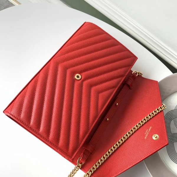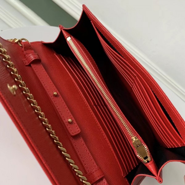 Saint Laurent WOC Monogram Chain Wallet In Red Leather