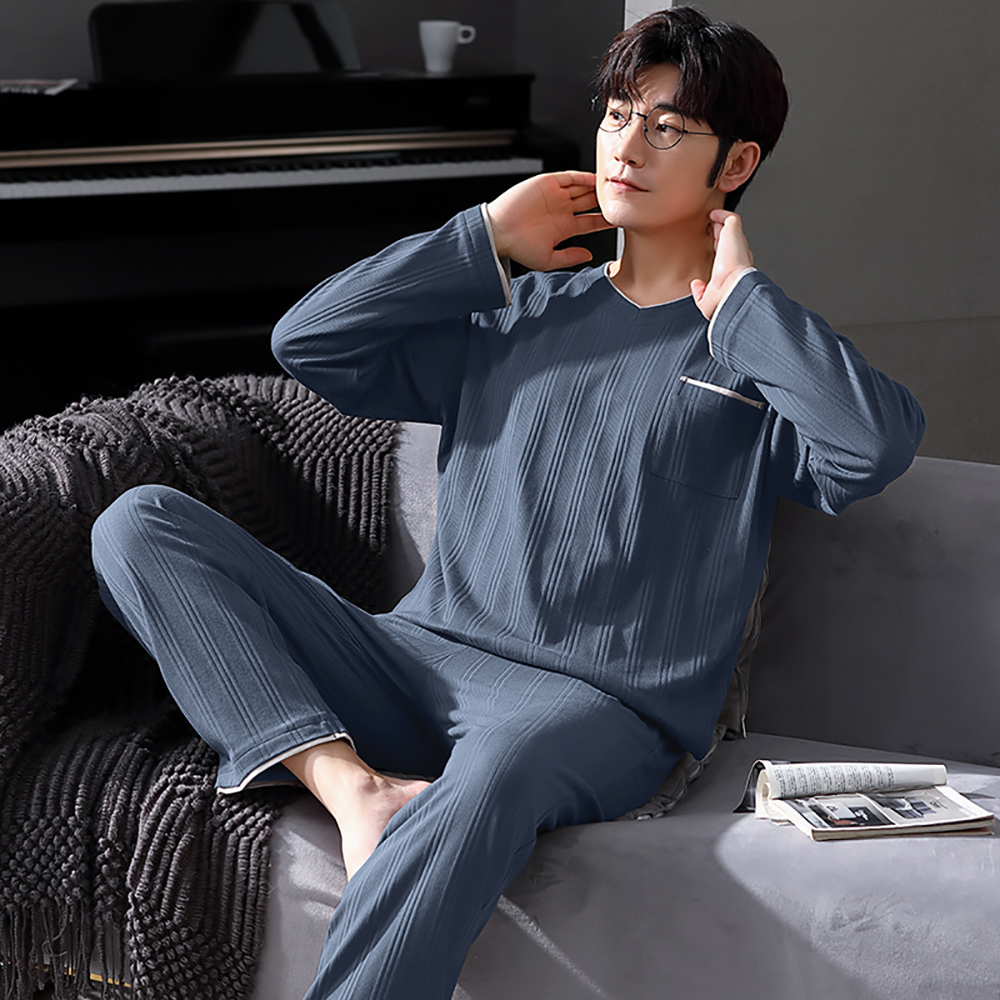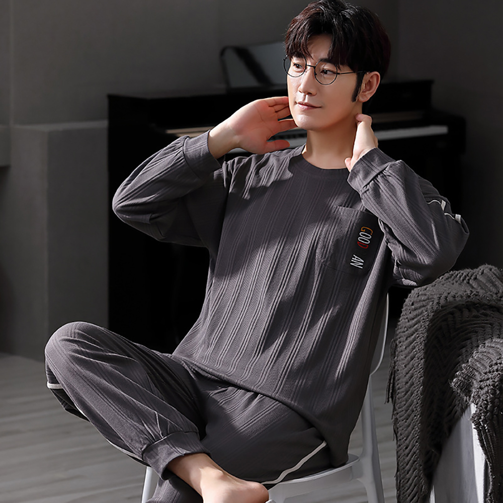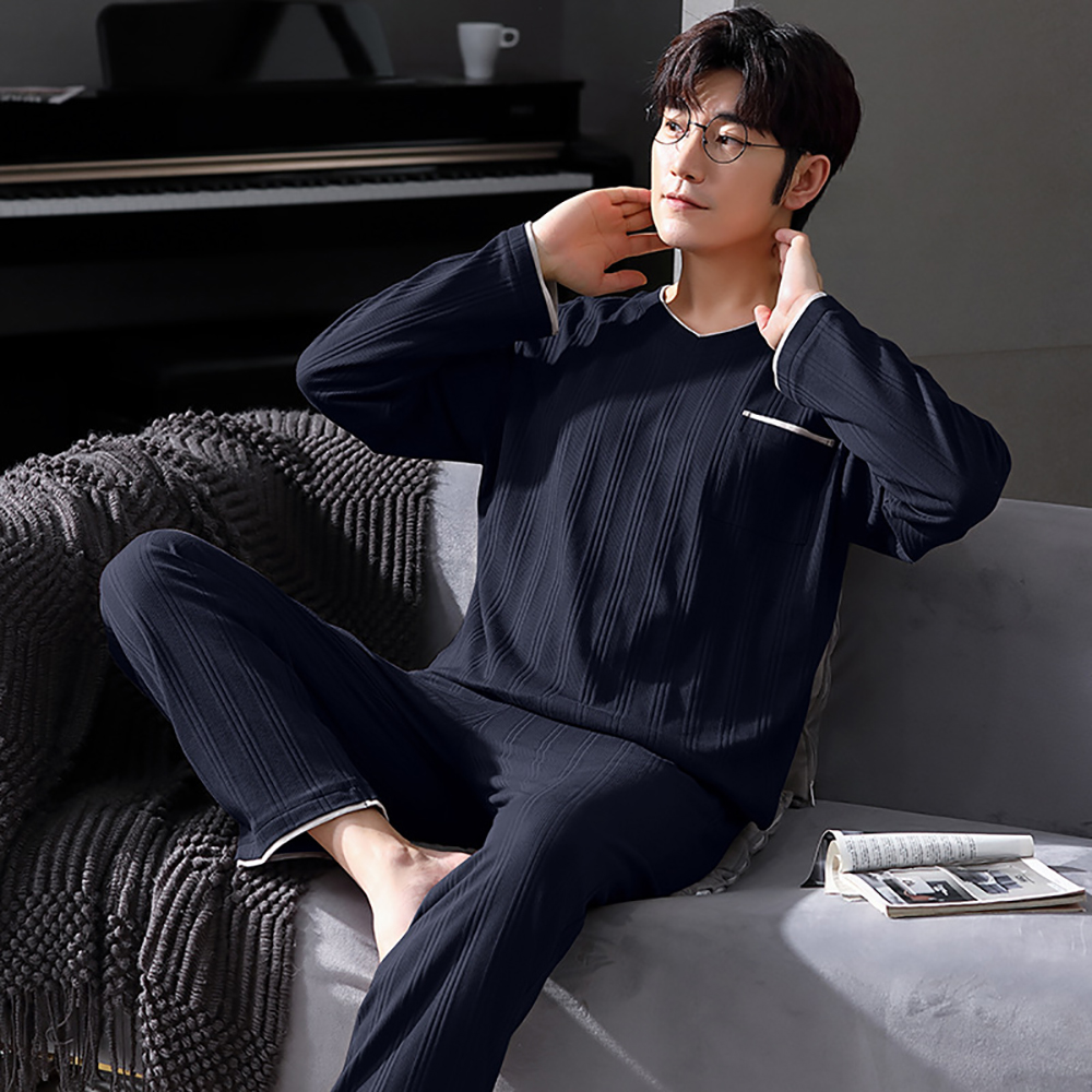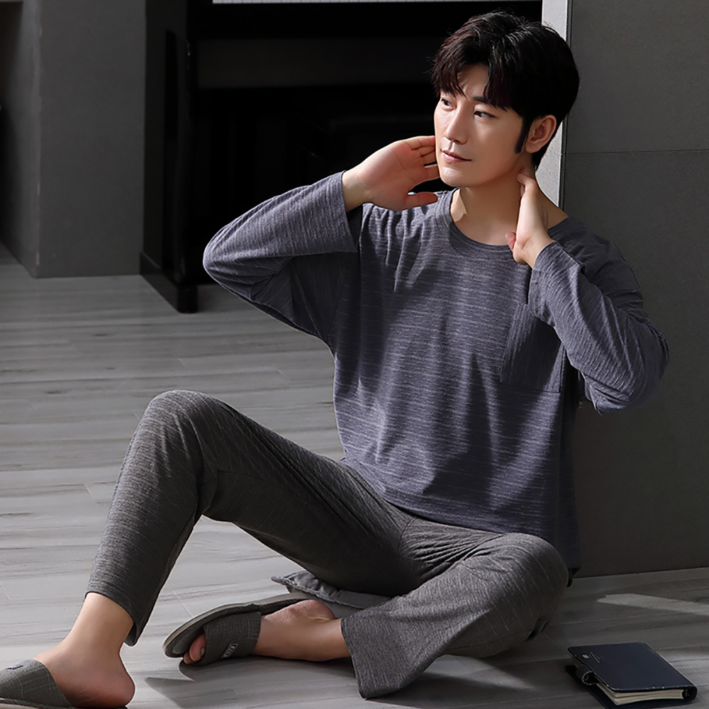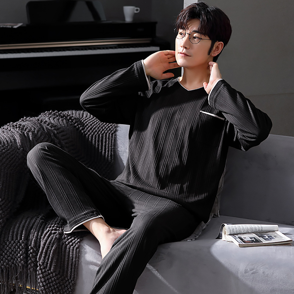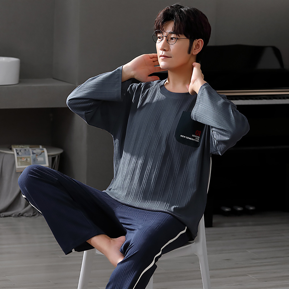 Spring Summer Male Long Sleeve Pajama Sets Casual Striped Lounge Set Comfortable Soft Sleepwear Pijama Plus Size Pajamas for Men