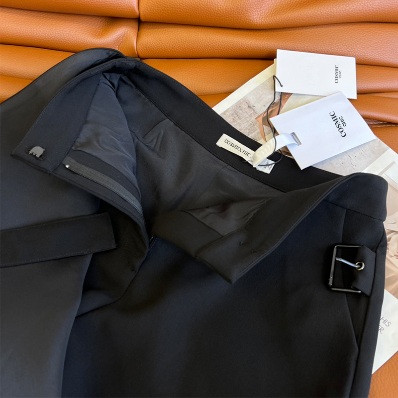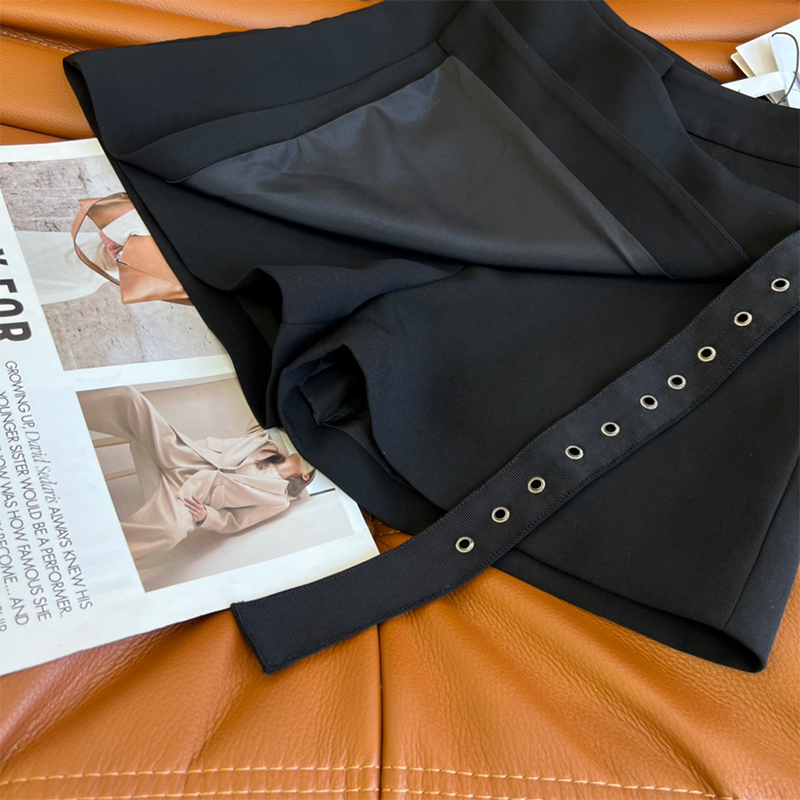 2022 Summer Women High Waist Shorts Black Cropped Hem Belt Button Skirt Shorts Loose Wide Leg Streetwear Fashion Simple Culottes