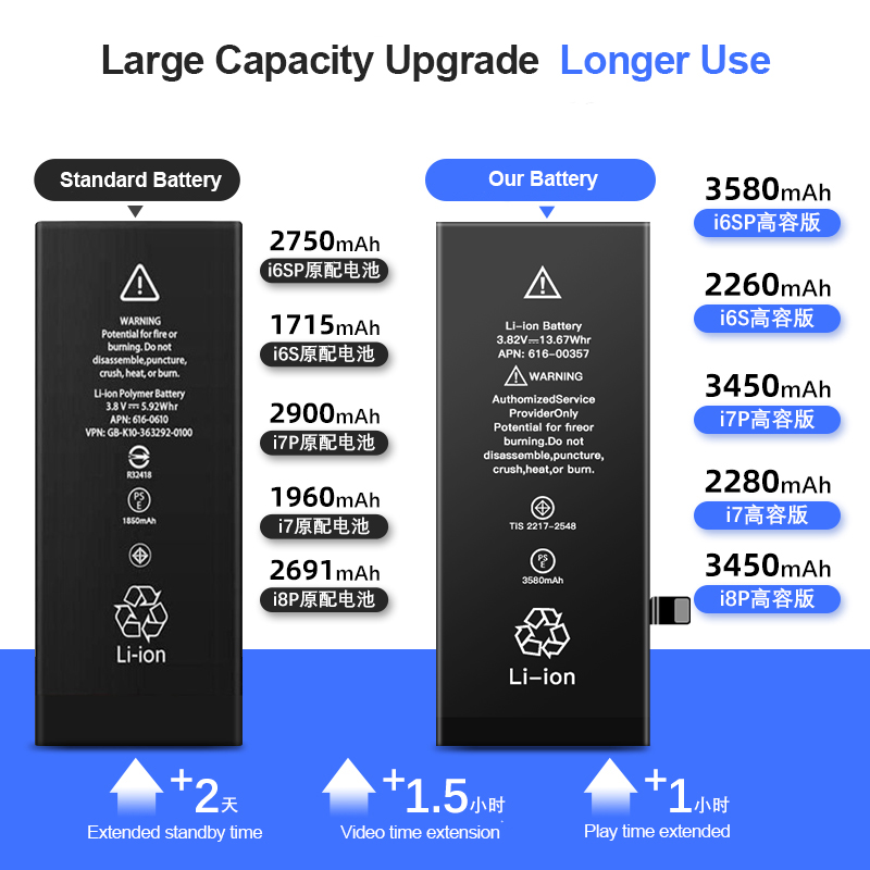 Customers3: Took 3400mAh for IP 6 plus, Test about 3700mAh. When charging with 7 to 100%, showed 3100mAh.