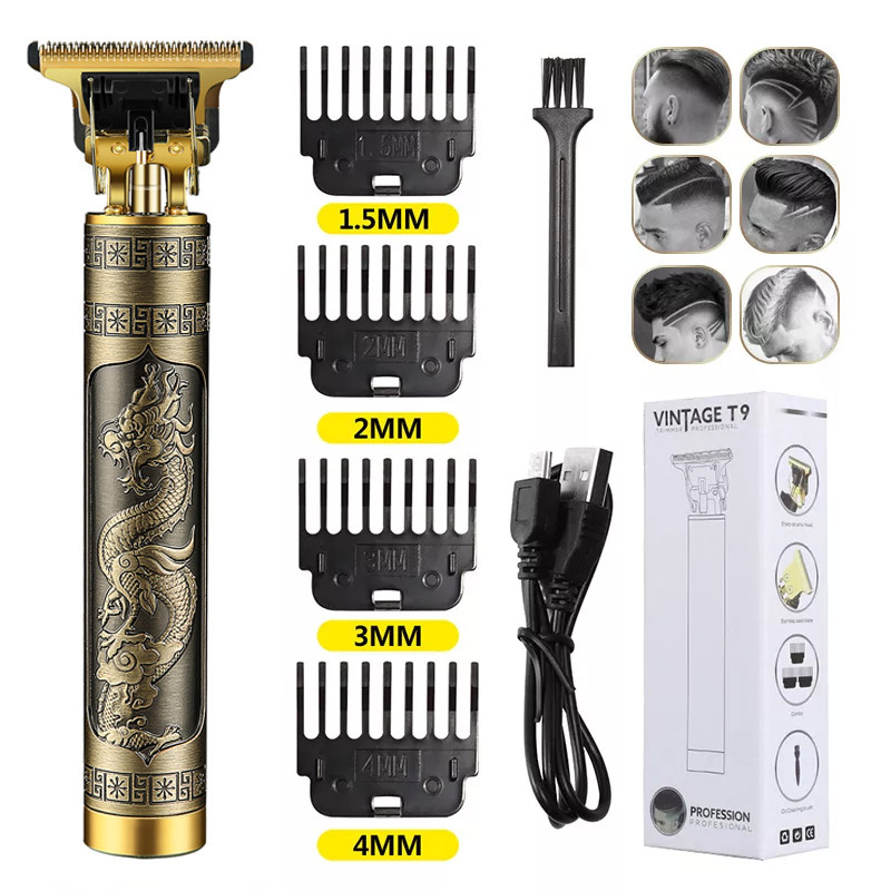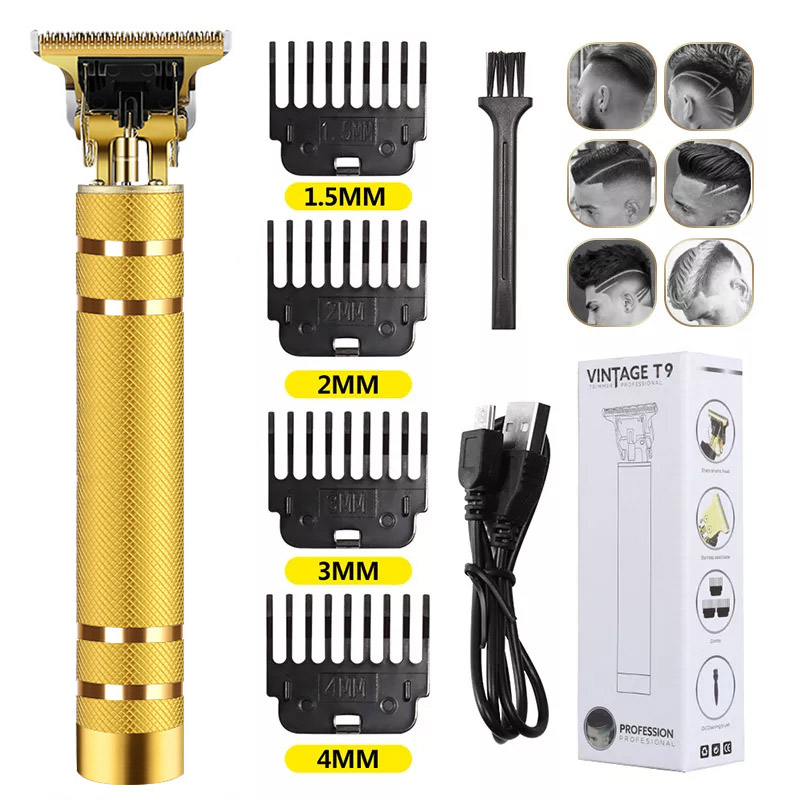 2022 Vintage T9 0MM Electric Cordless Hair Cutting Machine Professional Hair Barber Trimmer for Men Clipper Shaver Beard Lighter