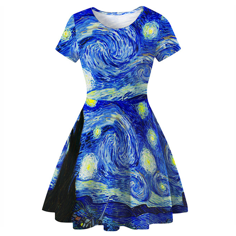 Fashion Van Gogh The Starry Night Print Dress