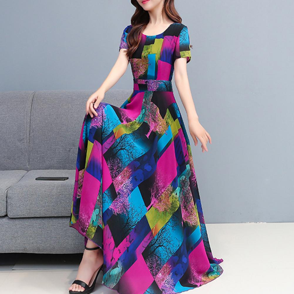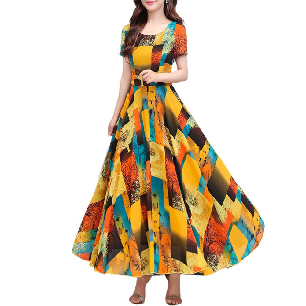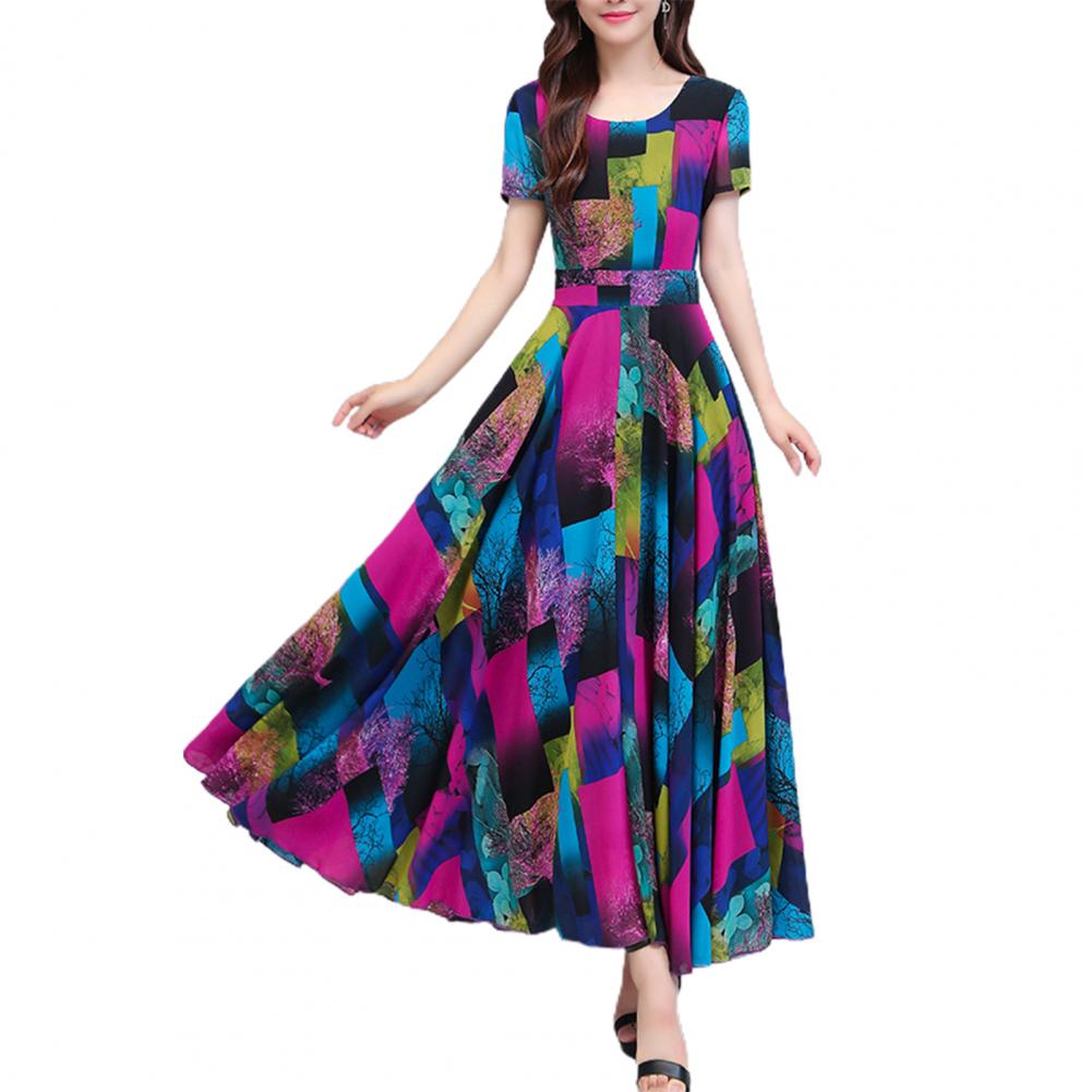 Women Dress Colorful Print Large Hem Summer A-Line Long Dress Streetwear
