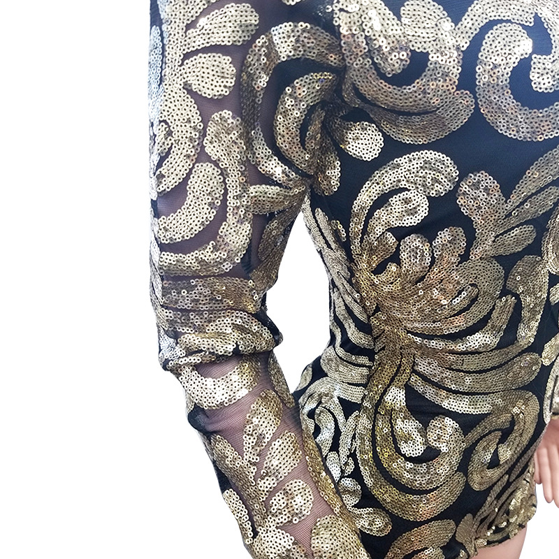 New 2019 European and American women's sexy deep V-neck printed Sequin Jumpsuit Size Chart :1 inch=2.54cm