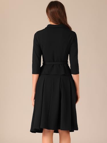 Allegra K Business Skirt Suit Sets for Women's 2 Piece Outfits Office 3/4 Sleeve Blazer Jacket Pleated Skirts
