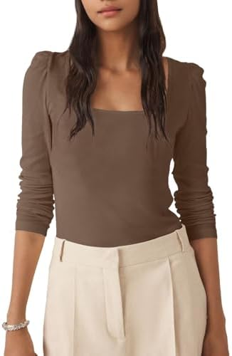 Allimy Women's Square Neck Ribbed Tops - Embrace the Elegant Square Neck Design